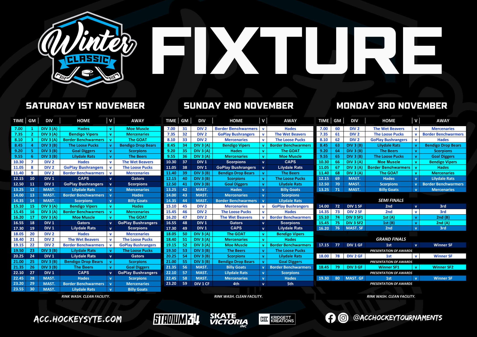 The Australian Club Championships (ACC) is one of the premier inline hockey tournaments in Australia, showcasing the best talent from across the country and New Zealand. Hosted annually at STADIUM34, the ACC offers an exhilarating week of competitive hockey across multiple divisions, including Pro, Division 1, Division 2, Division 3, Women’s, and Masters. Known for its high-energy games, exceptional sportsmanship, and vibrant community atmosphere, the ACC is a must-attend event for players, coaches, and fans alike. With finals guaranteed to thrill, and top-tier facilities, the ACC delivers an unforgettable experience for everyone involved.